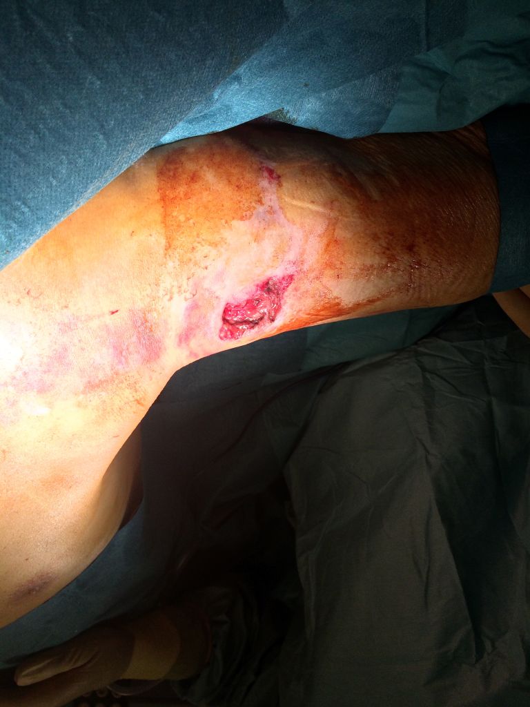 – Tras ser identificados todos los trayectos, al ser heridas contaminadas o sucias, deben ser lavados abundantemente (con suero fisiológico y antisépticos para eliminar gérmenes y cuerpos extraños por arrastre), extrayéndose manualmente los cuerpos extraños si fuera preciso. También deben extirparse, mediante desbridamiento mecánico, tejidos isquémicos y esfacelos y si está indicada la sutura, realizarla dejando colocado un drenaje.