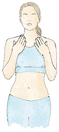 Coloque las manos sobre las clavículas manteniendo los codos pegados al cuerpo.