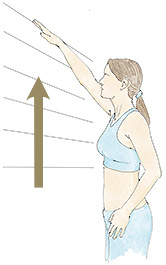 Con el brazo extendido frente a una pared, elévelo. Si tuviera baldosas, cuéntelas para comprobar su progreso hasta donde llegue. Repita el ejercicio, pero de lado a la pared.