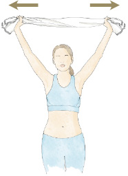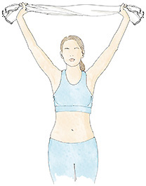 Con la ayuda de una toalla y los brazos extendidos, eleve los brazos por encima de la cabeza y tire de ambos extremos. Repita los estiramientos 10 veces inspirando por la nariz y expulsando el aire por la boca.
